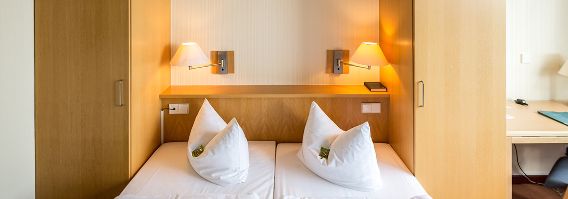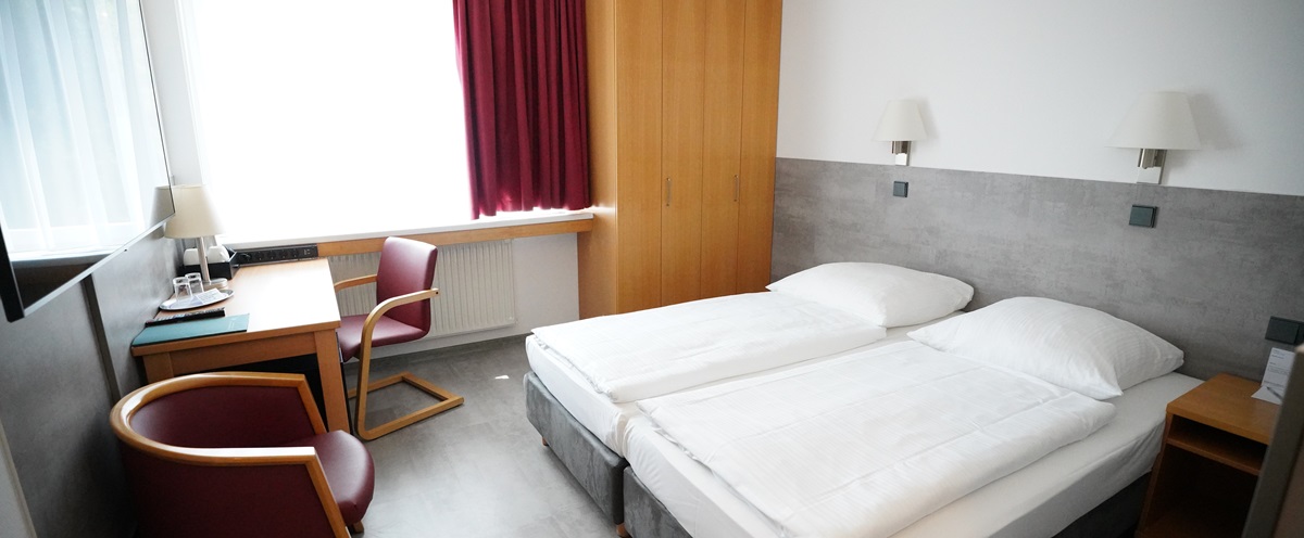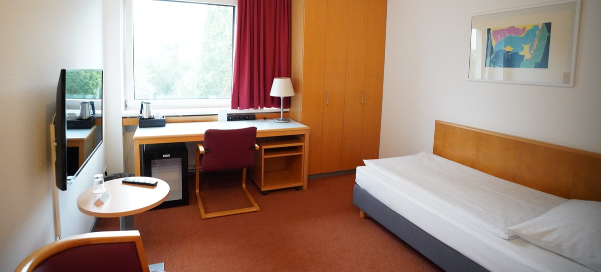 Das Wohnen in einem der 248 Zimmer bietet die nötige Ruhe und Entspannung nach einem Seminartag. Die Zimmer sind ausgestattet mit Telefon, TV, Schreibtisch, Dusche/WC, Haartrockner und kostenfreiem WLAN. Gern können Gäste auch Zimmer mit Terrasse buchen.