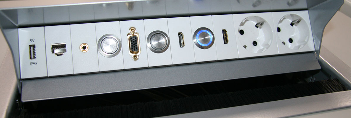 - Höhenverstellbares Rednerpult mit Laptop, Display und Mikrofon (auf Anfrage)